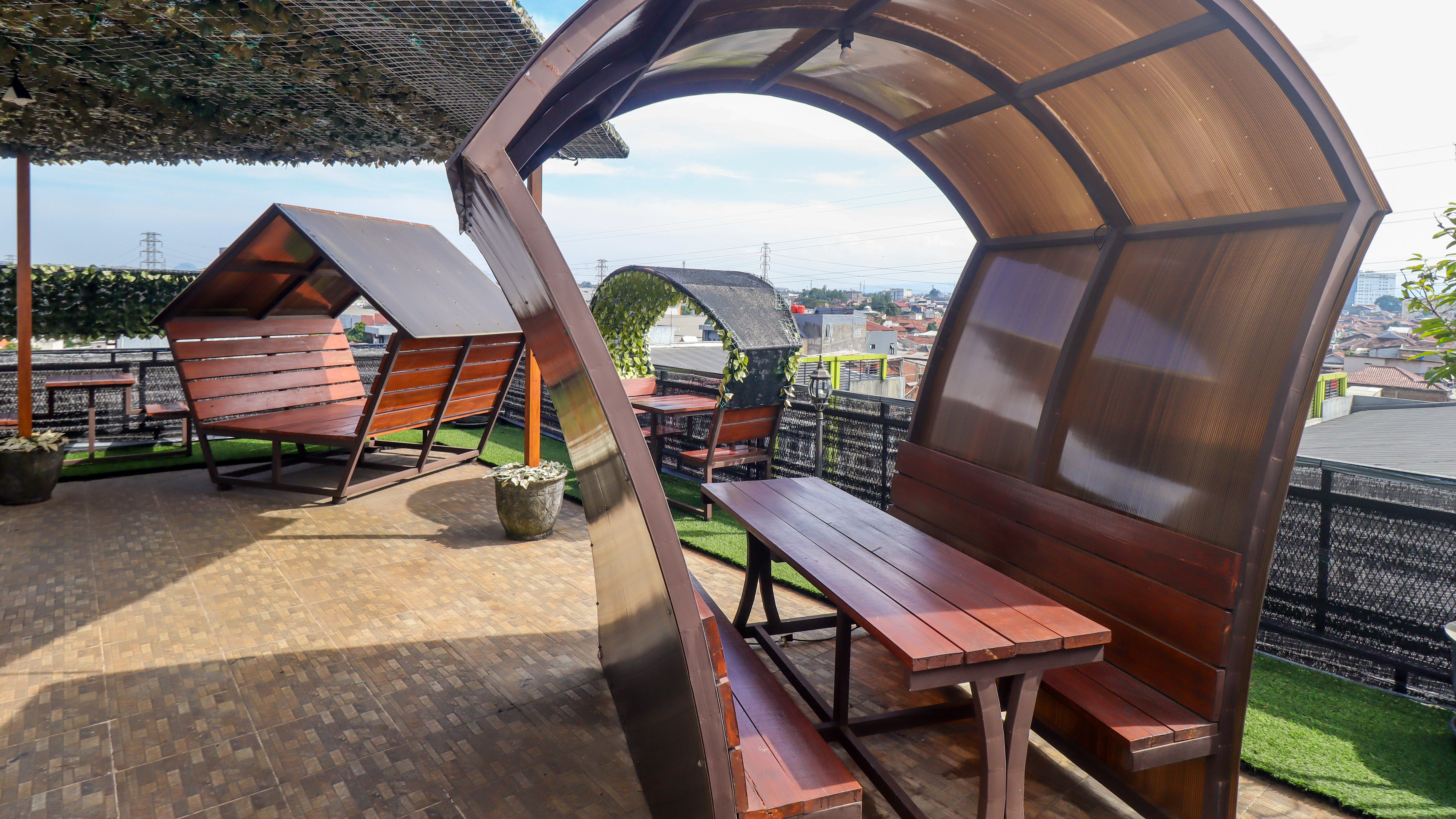 "Bersih, nyaman, utk ukuran room memang kecil hanya 9,2m2 namun tdk mengurangi kenyamanan beristirahat. Cuma 1 menit jalan kaki ke cibaduyut yg sangat famous dengan sepatu" kulit lokal. Review Makanan"
